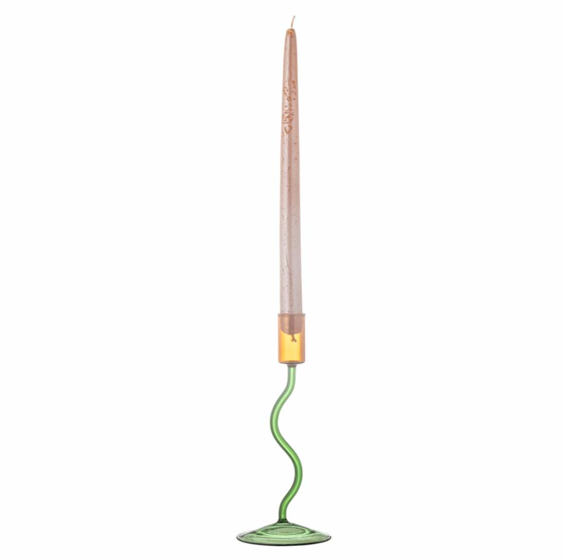 The Ada Candle Holder with its flowing design and dynamic green shade, radiates an exclusive and modern charm. This candle holder, made of coloured glass, will add an artistic touch to any decor and spread a warm and inviting light in the home. The candle holder is mouth-blown, which may result in variations in shape and size.
