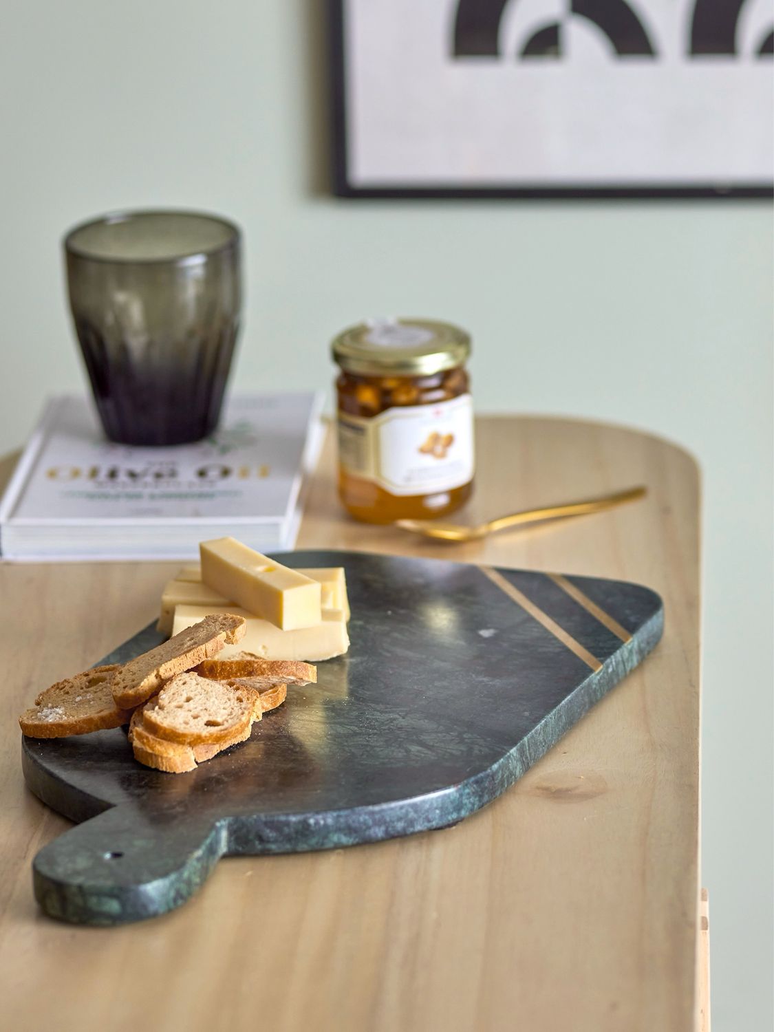 The Adalin Cutting Board by Bloomingville is made of marble in green and black shades, with an inlay of golden metal. The beauty of a natural stone is that no two pieces are exactly alike. Each one is a unique work of art forged by Mother Nature over millennia using heat, pressure and lots of different minerals and organic materials. The way these minerals settle into the stone is what causes the huge variety of colours, patterns, textures and veins in each slab.