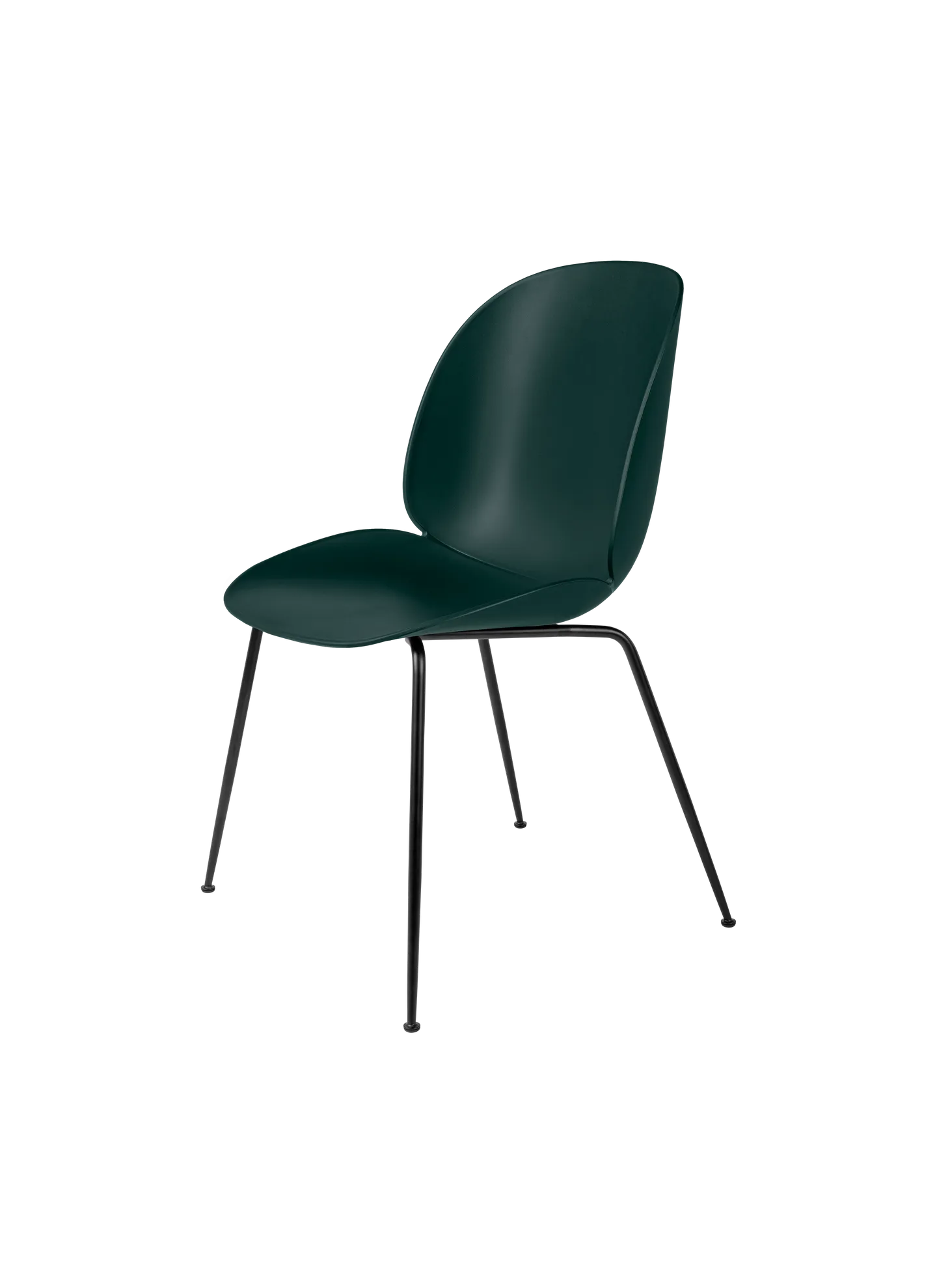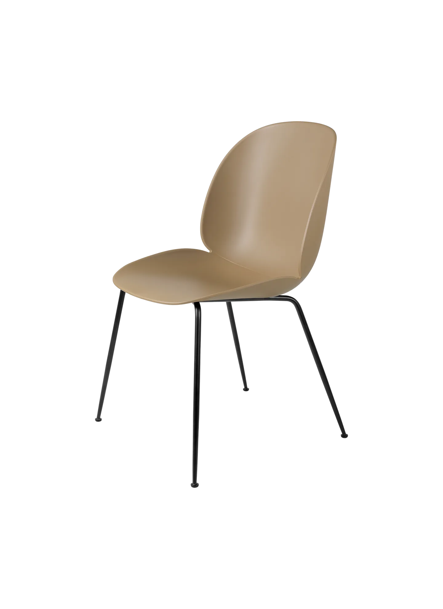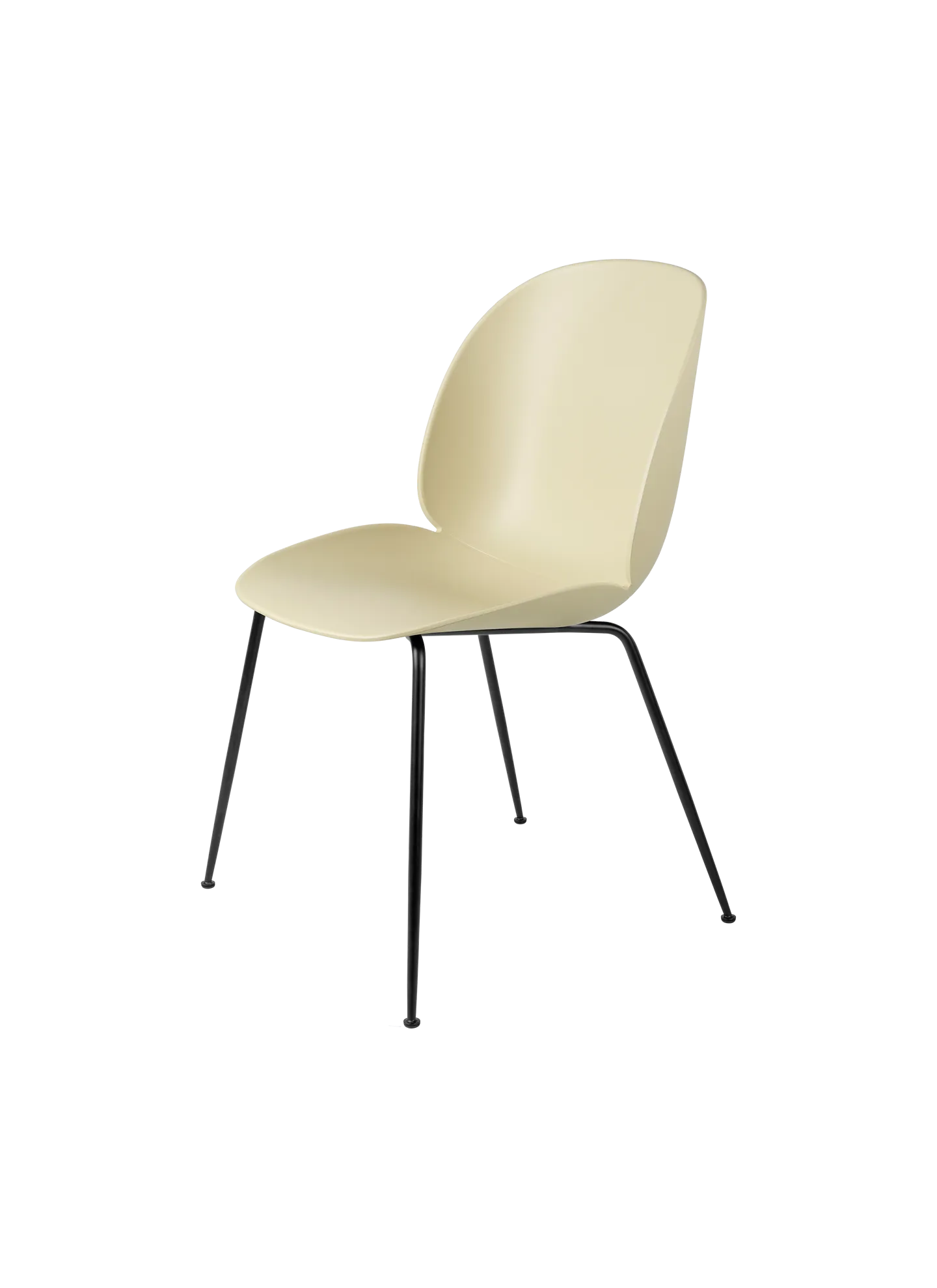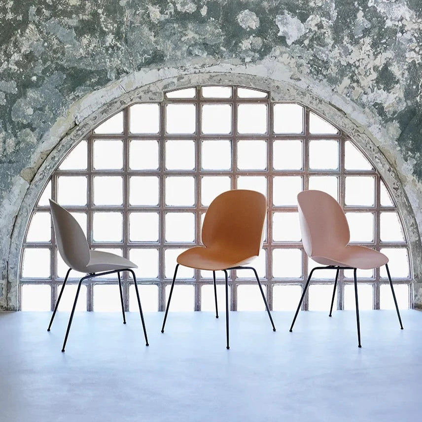 The Beetle's durable outer shell is a continuous, curved form, reminiscent of the strong and graceful contours of the insect that inspired it. Despite its robustness, it is designed to gently flex, providing comfort even after prolonged sitting, making it ideal for dining and meetings. Sleek and elegant conical metal legs add an overall lightness to the design, accentuating the ‘beetle’ aesthetic.