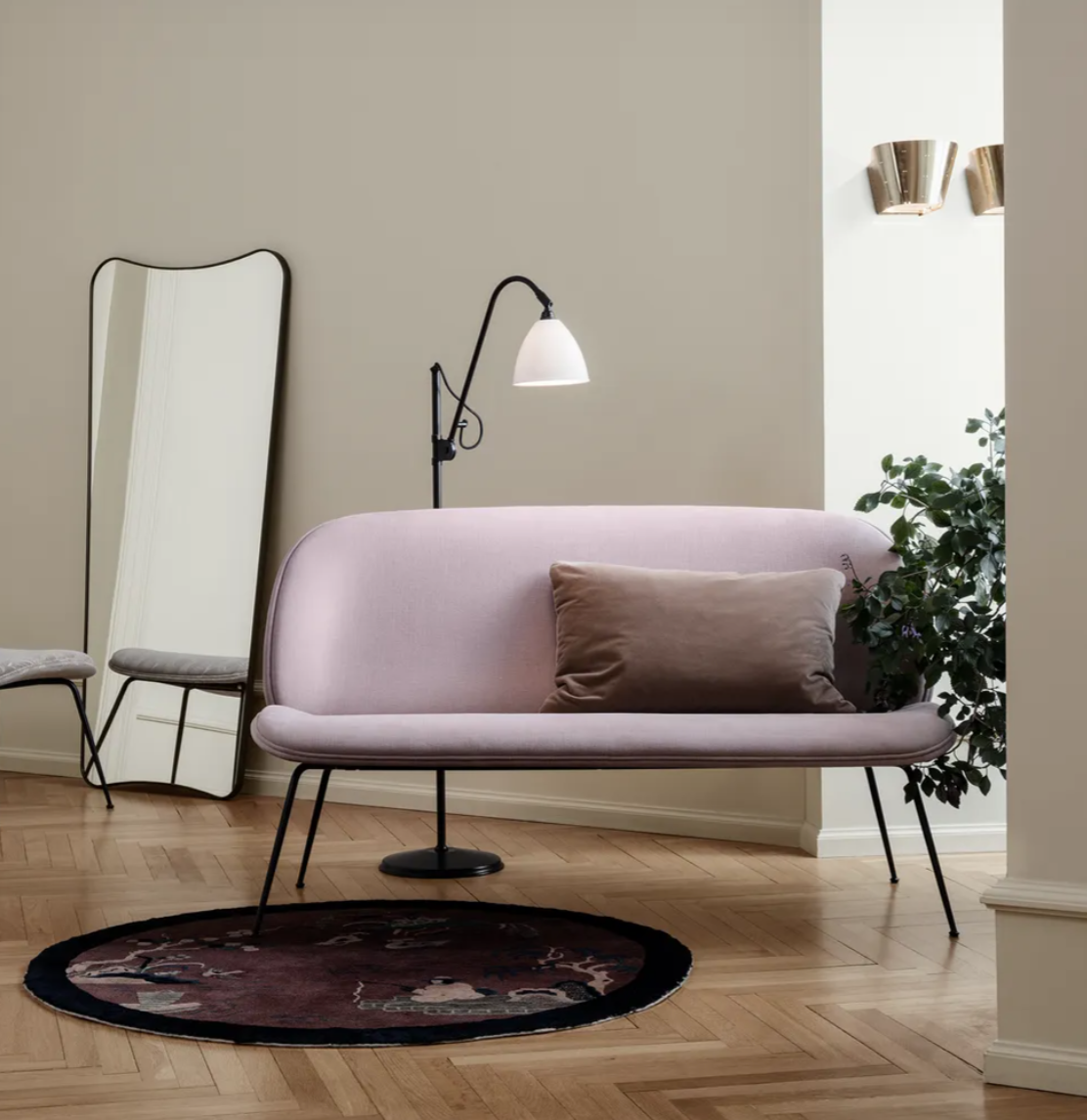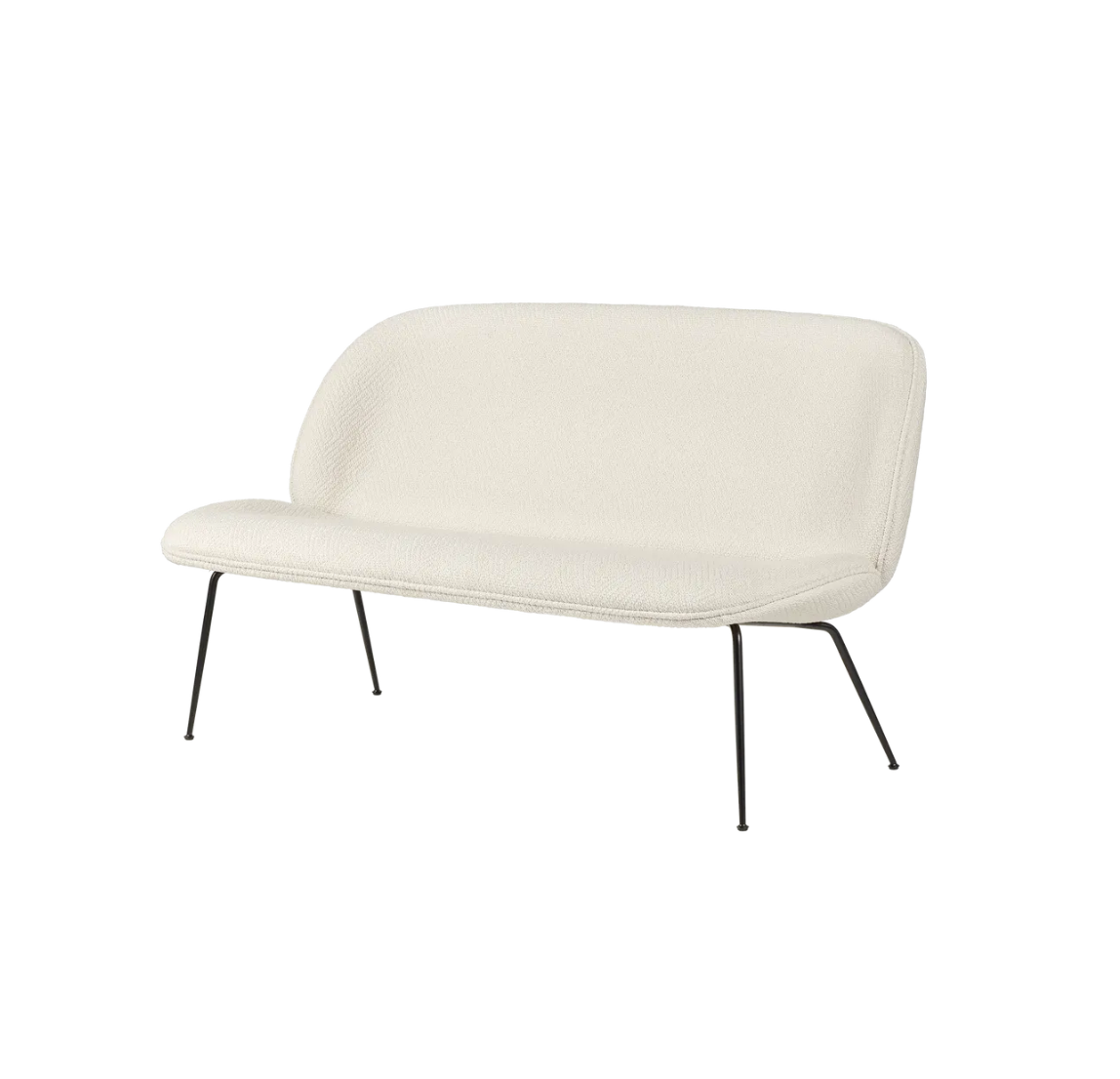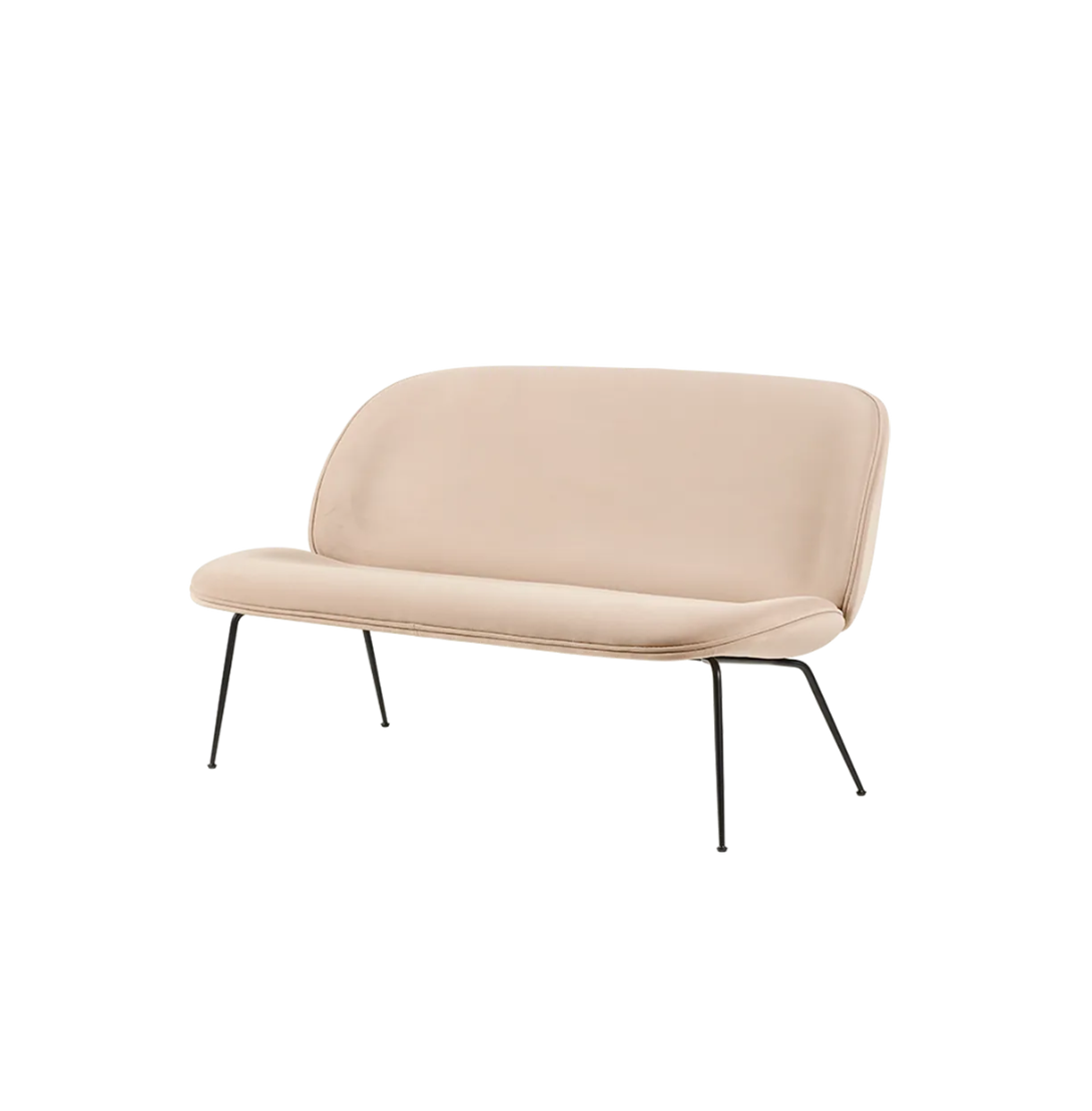 Taking its inspiration from the Beetle Lounge Chair, the elongated Beetle Sofa has a rounded, protective outer shell combined with a soft inside – just like a beetle. The 2-seater Beetle Sofa plays with the contrast between the enveloping outer shell and a soft, inviting interior which encourage to be seated. The characteristic look is enhanced by the delicate, slightly conical legs, giving its light expression.The design duo GamFratesi has been looking closely at the anatomy, aesthetics and movement of a beetle where the design reinterprets the characteristic elements of the beetles’ sections: shape, shells, sutures, rigid outside and soft inside.