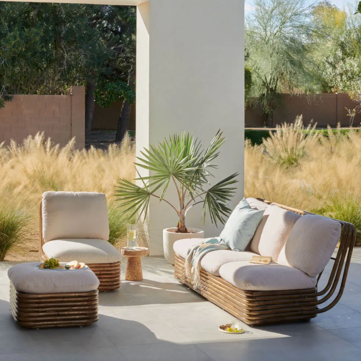 A collection comprising a lounge chair, three-seater sofa, ottoman and floor lamp – all crafted from rattan – the Bohemian 72 Collection embodies Crespi’s career-long aim to create furniture that seamlessly unites indoor and outdoor living. She never allowed curtains or screens to block the natural flow of light or air and had what her daughter has described as ‘a deep sentiment for the cosmic energy of nature