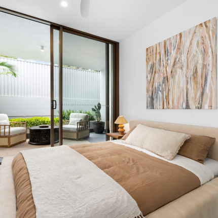 Low-profile, wrapped platform silhouette for a serene, “custom” look.