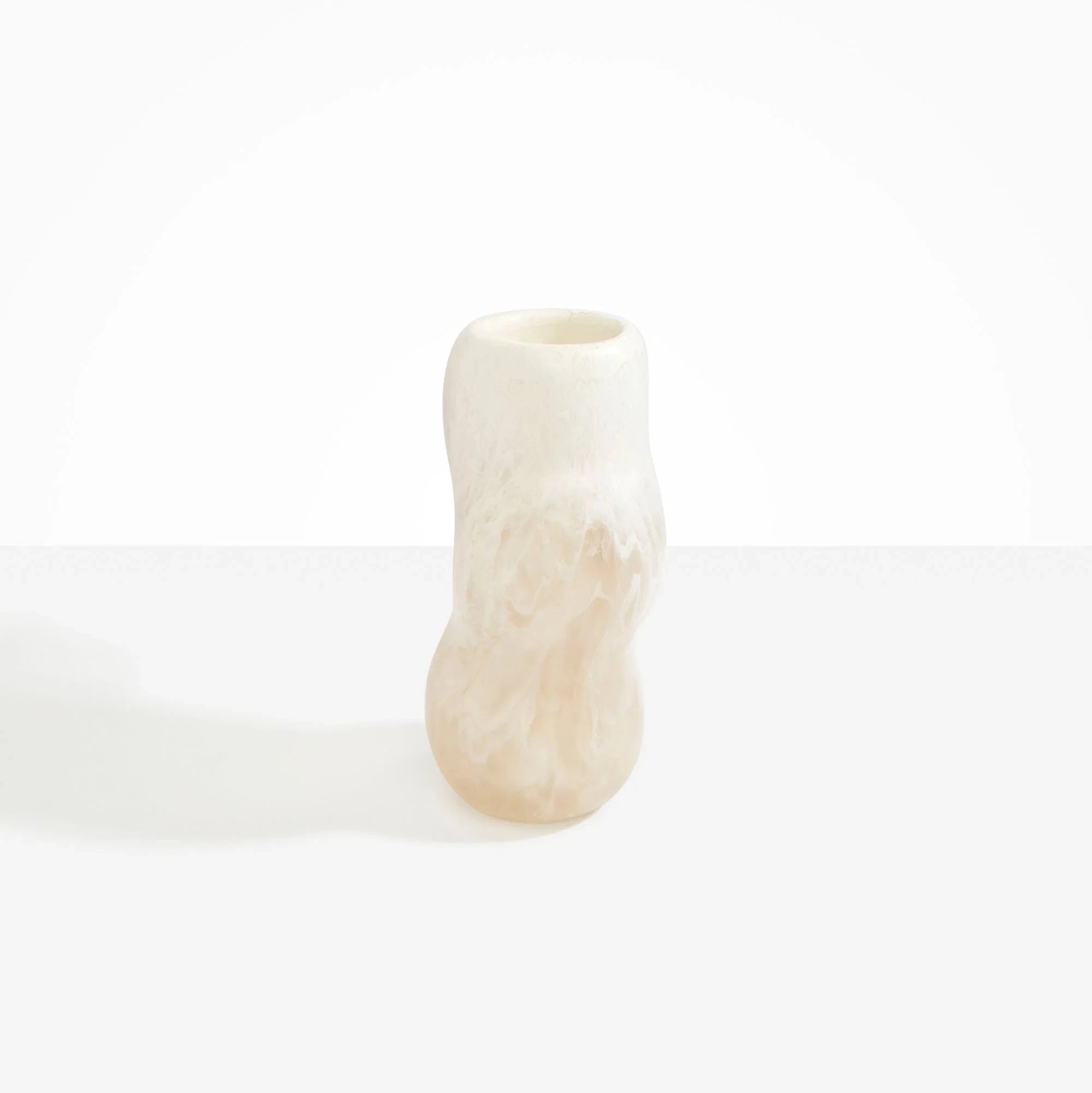 Designed for smaller floral arrangements, it balances utility with a strong decorative impact. The marbled resin surface reveals organic swirls and textural depth, ensuring each vase is entirely unique. Style it alone for a striking statement, or pair with the Small and Large Pebble Vases to build a layered, harmonious arrangement.