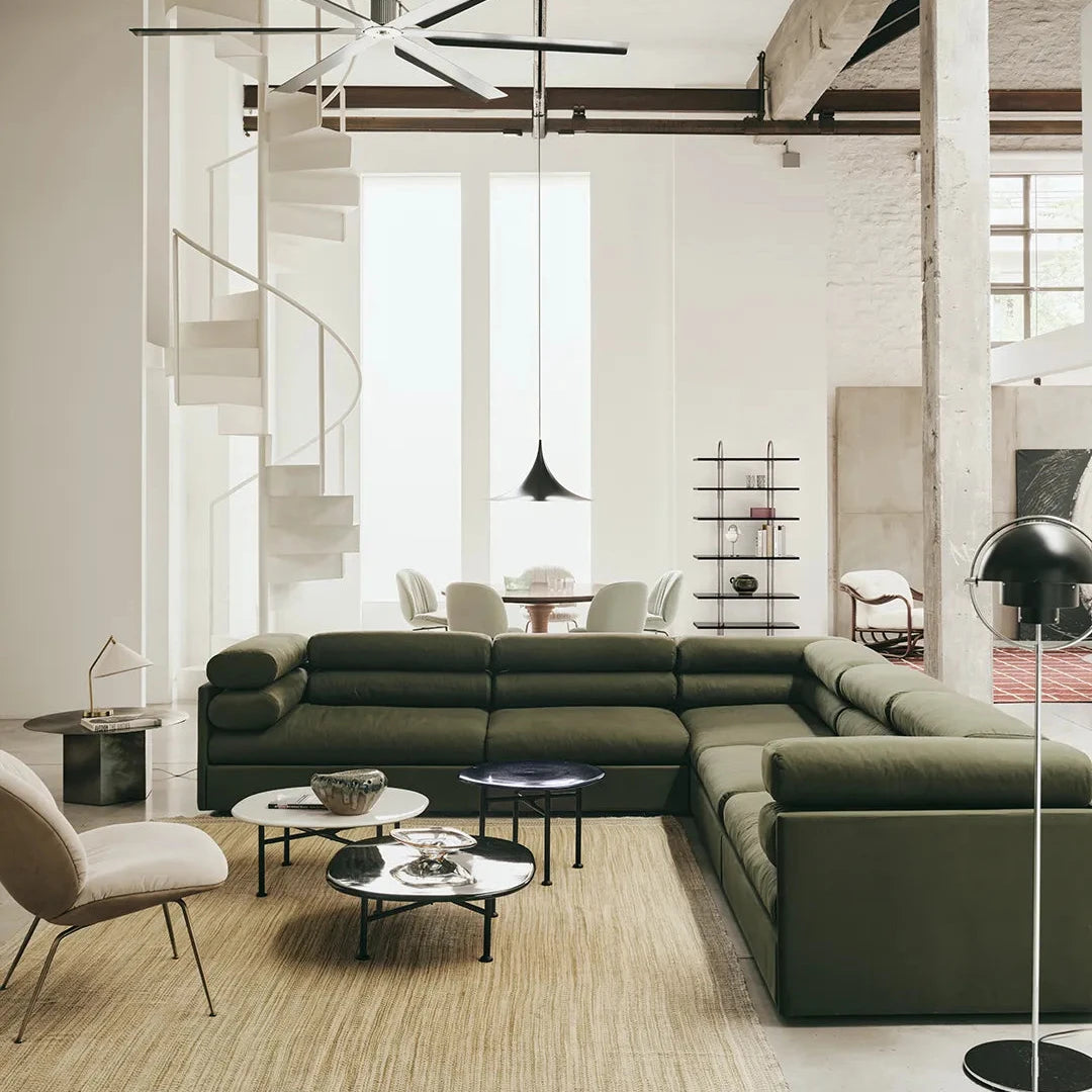 Expressing an inviting softness with architectural structure, the Elogio Sofa is one of the iconic furniture designs to emerge from the husband-and-wife studio of Tobia and Afra Scarpa. Created in 1974 as an evolution of the Erasmo sofa, it introduced a new modular approach to domestic living, allowing for multiple configurations depending on the shape, scale, and style of the space. Revisited by Tobia Scarpa with GUBI five decades later, this edition has been subtly upgraded to enhance comfort and finesse the geometry of the design. Its interchangeable cushions can be reoriented to suit different needs and upholstery options, including GUBI’s new Reales and Fustagno fabrics, enhance the sofa’s tactile and visual character.