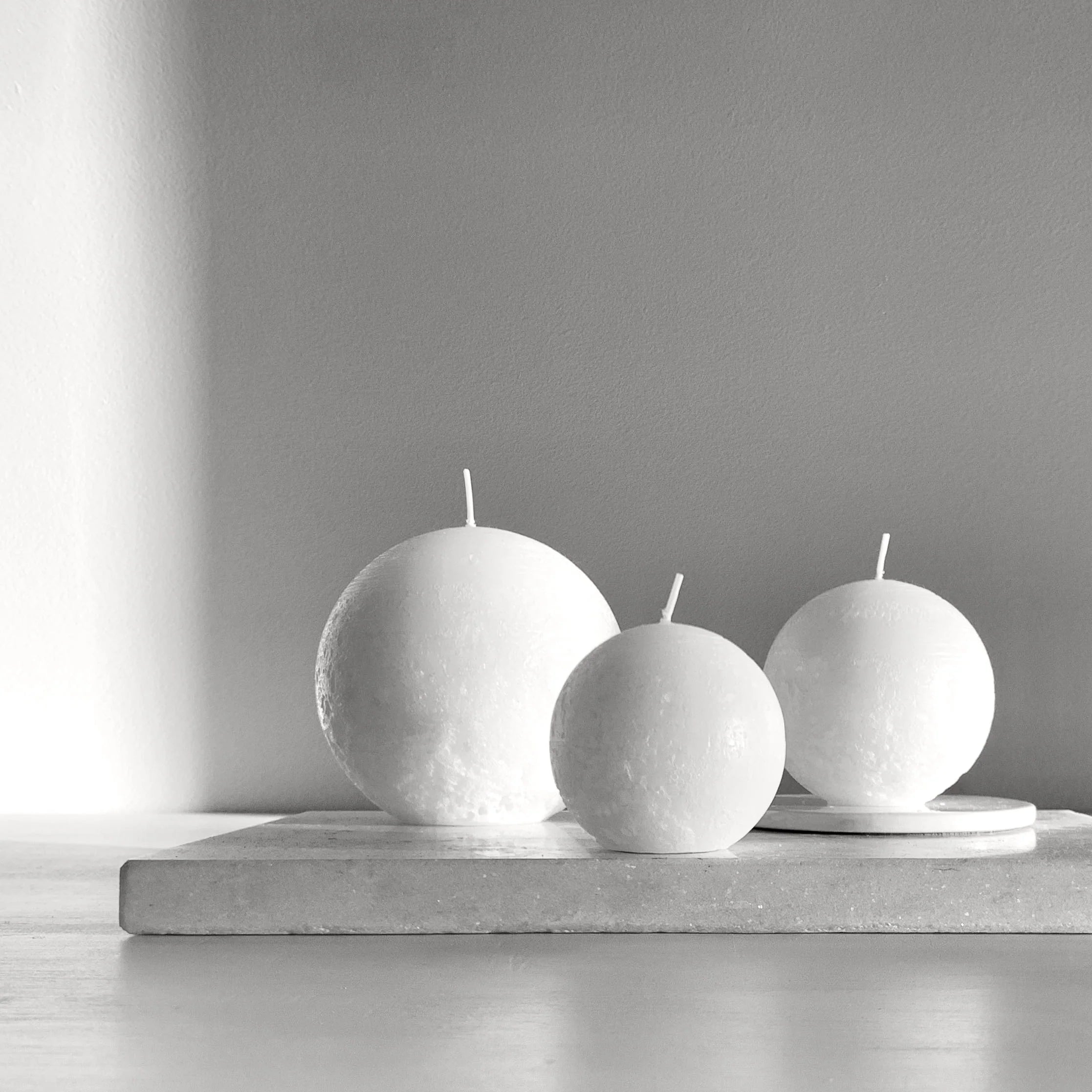 The Sphere Candle Gift Set comes in a gift box and contains 3 pure white Sphere Candles: